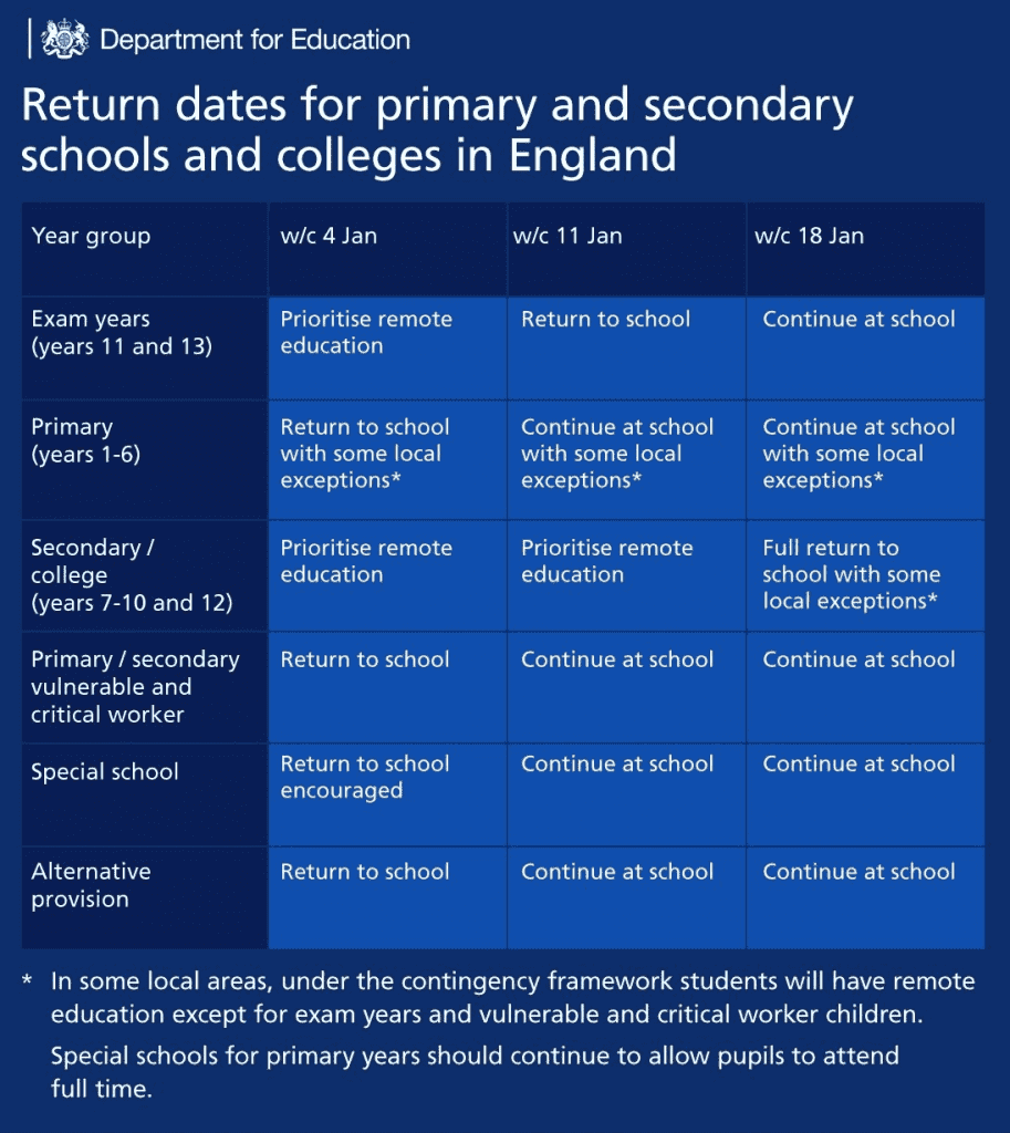 Our updated plans for pupils returning in January are outlined below: