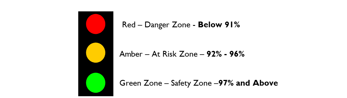 We will monitor your child’s attendance using the following traffic light system as a benchmark: