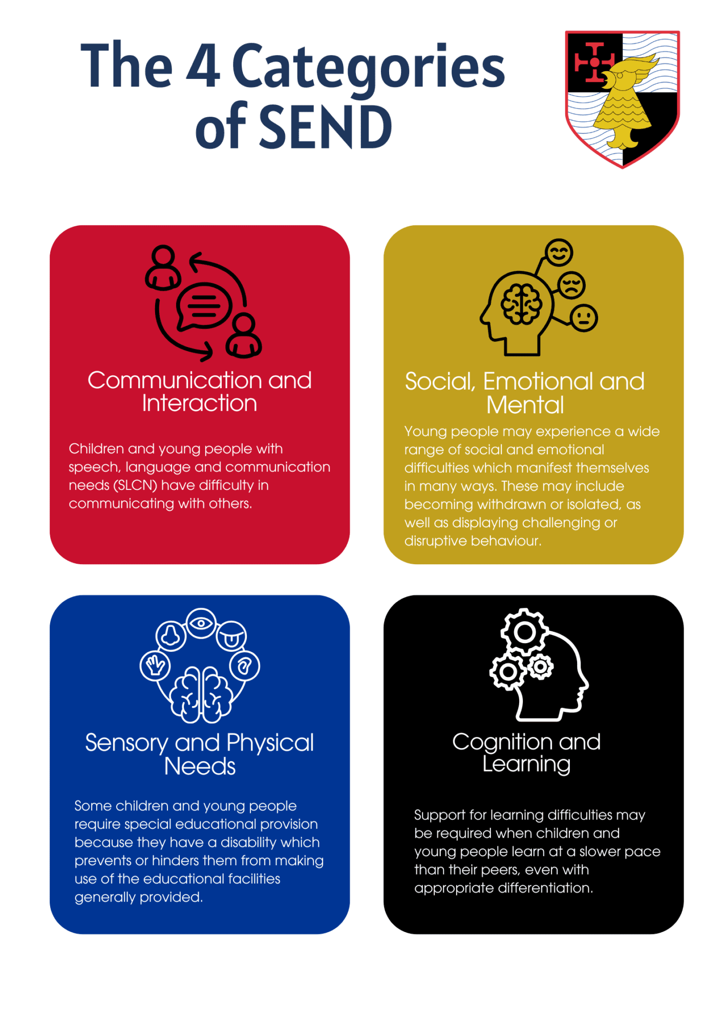 The SEND Code of Practice identifies four broad areas of need and support: